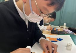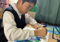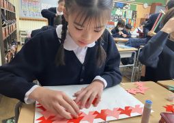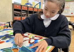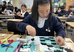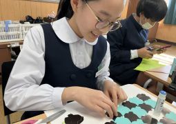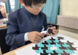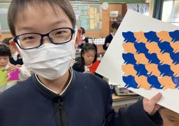 算数の学習で行っているエッシャー風オリジナルしきつめ作品も形になってきました。