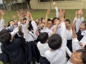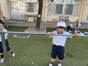 昼休みには「全員鬼ごっこ大会」、わくわくタイムには「全員ドッジボール大会」を開催!