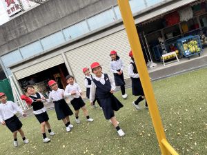 まずは、鬼ごっこ!148が運動場を縦横無尽に駆け回ります。