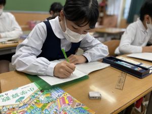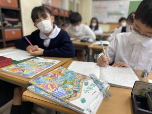 お知らせ ・懇談の際に、お水の代金をいただきます。ご準備ください。また、懇談期間中の図書室の開放は、15時までになります。 ・アート展で、お子さんの作品の写真は撮って頂いても構いません。他の作品は写らないようにご注意ください。 ・健康把握のためにも、リーバーの入力を8時までにお願いします。 ・明日、社会テストがあります。範囲は、「特色ある地域のくらし」になります。 (2組は、「角と角度」の算数テストがあります。) |
