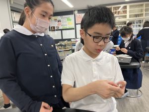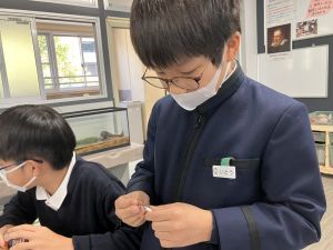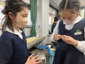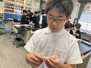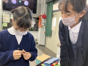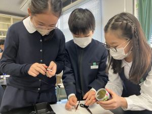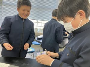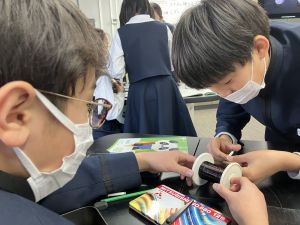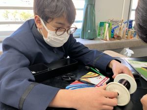 理科の学習では、ストローなどを使って手作りのコイルを作っていました。