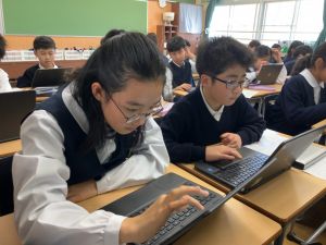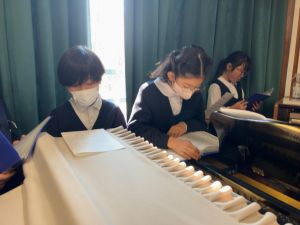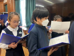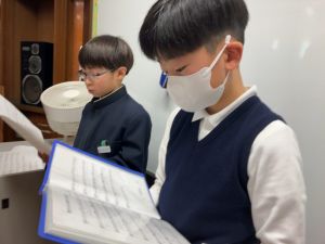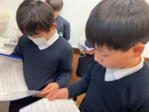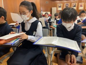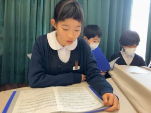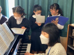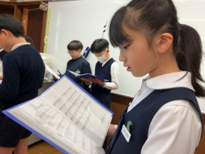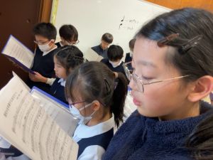 音楽の学習で、子どもたちは144期の卒業式に向けての歌を歌っていました。