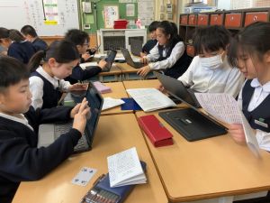 国語の学習では、昨日今日で「大造じいさんとガン」の疑問の交流を班ごとに行っていきました。