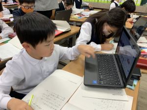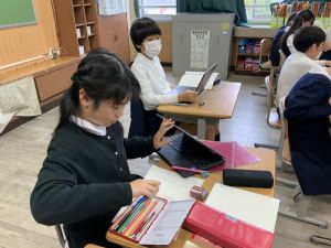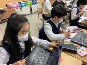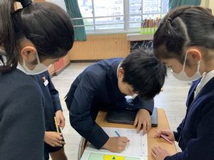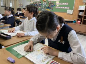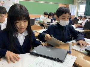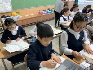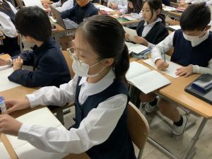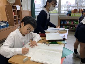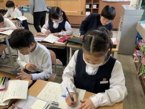 国語では「詩」をつくります。言葉を選び イラストを考え もうすぐ自分の詩集が出来上がります。