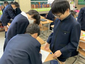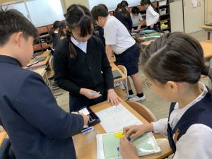 お知らせ ・社会ノートについて 3組は明日、社会ノートの提出になります。 2組は水曜日です。27日月曜日の授業の最後につけかえの評価をしています。理由を3行以上書くことを伝えています。3組、2組のみなさんは、それぞれ理由をしっかり書いて提出してください。 |