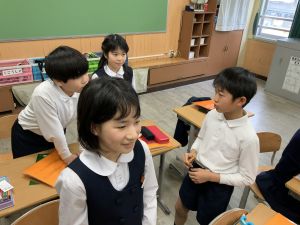 大阪の良いところ・附天小のよいところ・感謝の気持ちをたくさん込めて描いた絵に一言添えます。