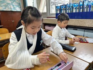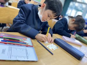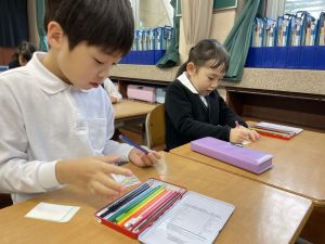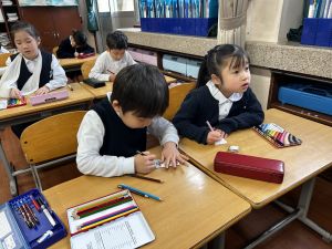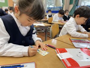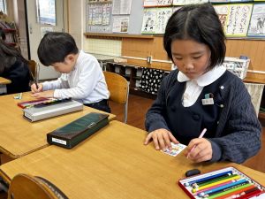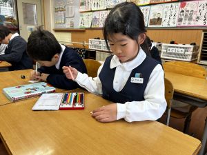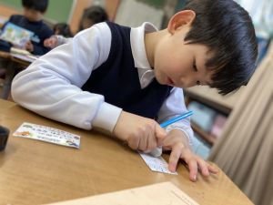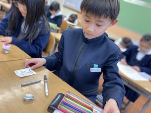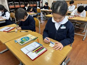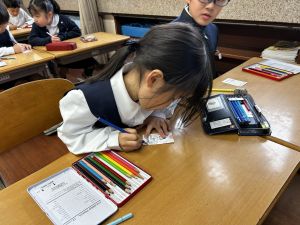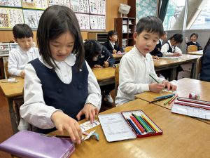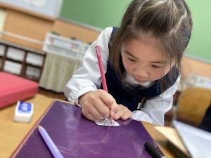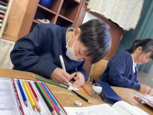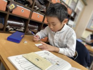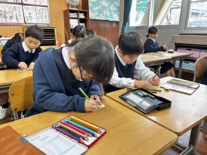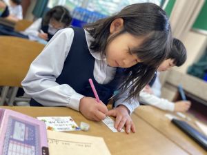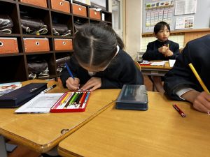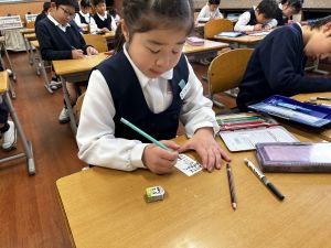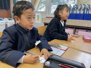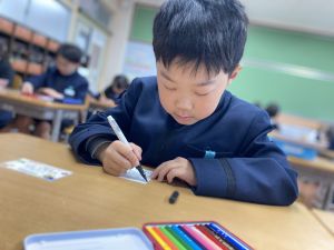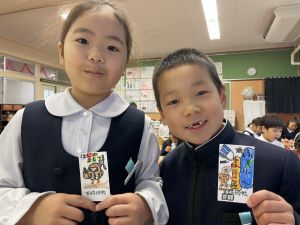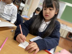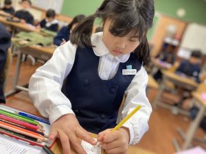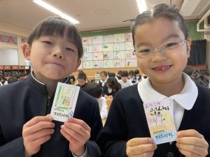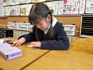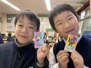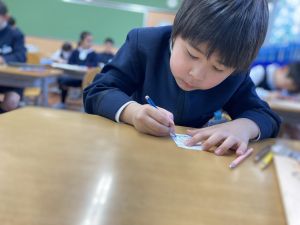 また、この研究会に向けて、参会者の方に、喜んでいただけるような企画を今年度考えています。参観者の方が見て、ほっこりとしていただけるような絵と言葉で表現しました。授業だけでなく、この企画でも、研究会に関わっています。