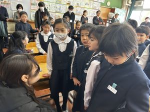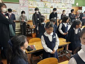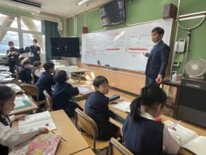 算数では、粘り強く問題に取り組む姿がありました。時間いっぱい、最後の最後まで頑張る姿がありました。少しのすきま時間には、附天小のいいところを、初めての人にも自分から進んで話に行き、笑顔がとってもステキでした。