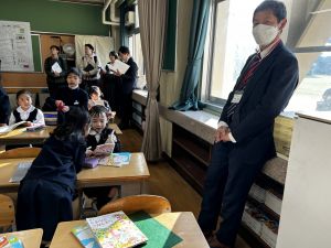 1-2組は算数。3組は体育の授業でした。