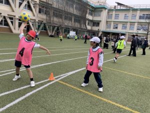 体育では、たくさんの先生に囲まれても、さすがいつもの3組さん。良いところをたくさん見てもらおうと、見て見て光線大発信でした。