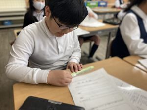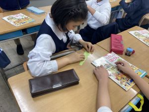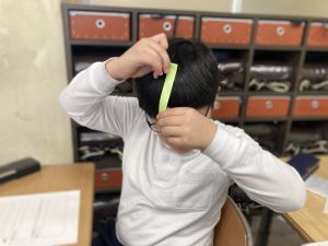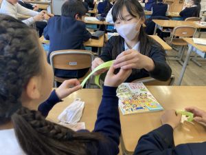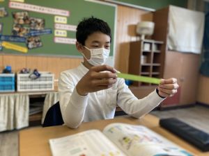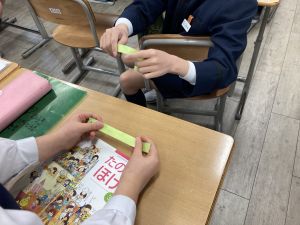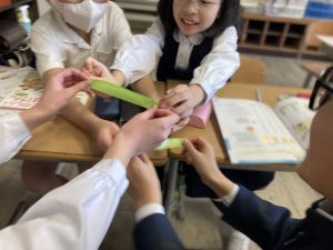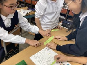 授業が始まると同時に、湊川先生に配られた”緑色のリボン”。