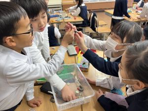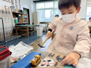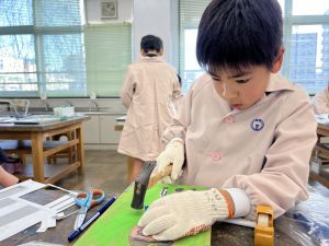 図工では,理科でも利用した「くぎ」を使って,新たな製作を進めています。どんな作品が出来上がるのでしょうか?