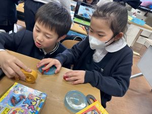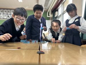 N極・S極がしりぞけ合う性質を利用して,射的をしたり・・・ カーレースをしたり・・・