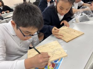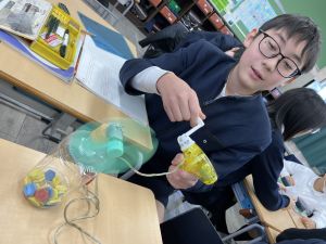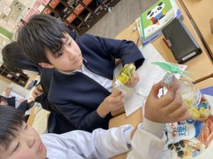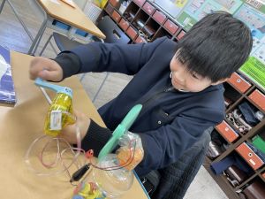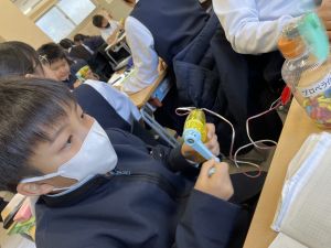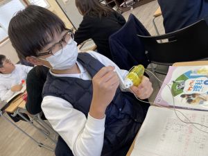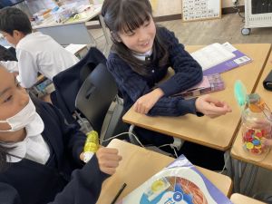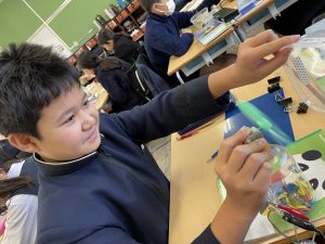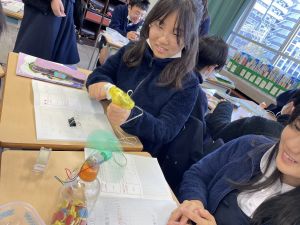 今日は理科の実験、算数はXY軸のグラフ、社会は戦争について、そして算数と図工は学年で行いました。