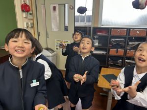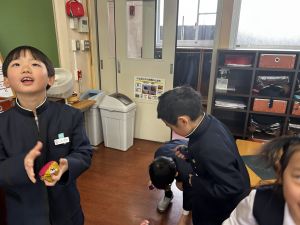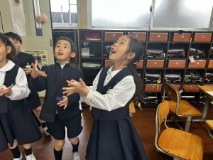 雪がまうと、目をキラキラさせてお尻を浮かせる子どもたちが、かわいらしい日となりました。