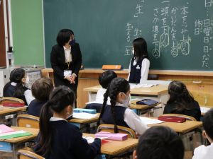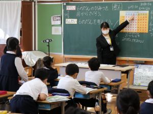 2年2組。国語「漢字の読み方」と生活「地域と生活」。