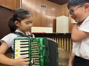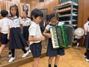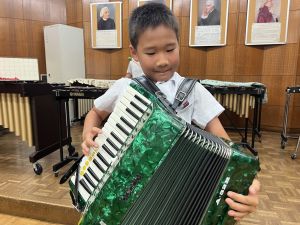 今日は、それぞれの曲で登場する楽器の紹介を行いました。