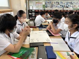 最終的な考えをスライドにまとめ、教室に掲示する予定です。