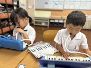 夏休みに鍵盤ハーモニカの宿題を出しており、今日初めてお友達と音を揃えました。