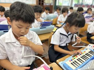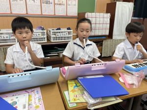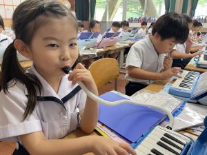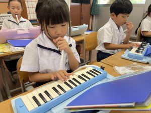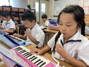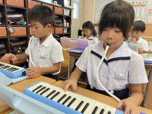 難しいかなと思えるパートもありましたが、夏休みの間に一生懸命に練習をしていたので、とてもキレイな音色を奏でることができていました。本当によく頑張りましたね!もしかしたら、まだ上手くできていない子もいるかもしれません。その人達は、お友達に追いつけるように練習してほしなと思います。