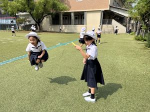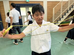 昨日の練習を受けて自主的に、「ボール」ではなく「縄跳び」を手にとる人が出てきました。
