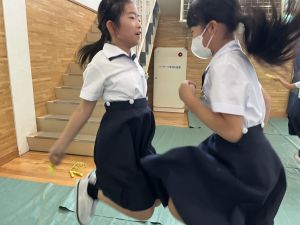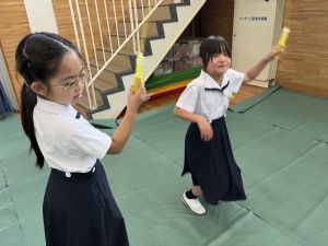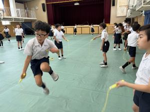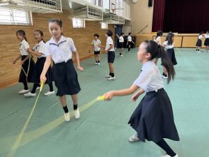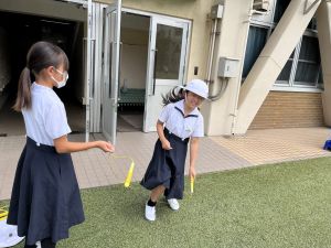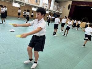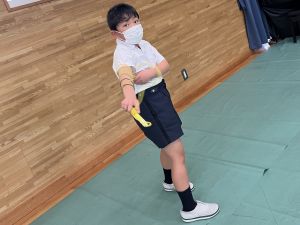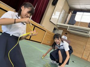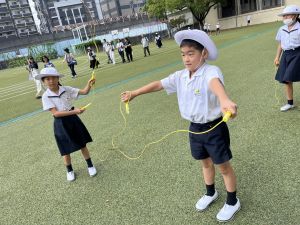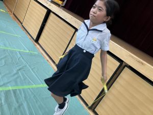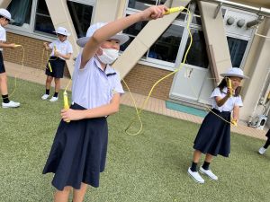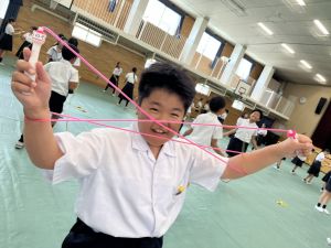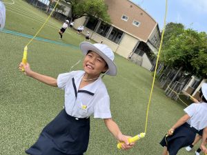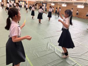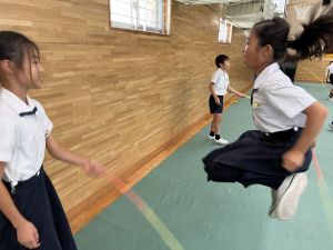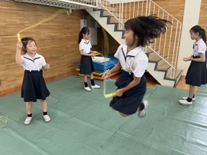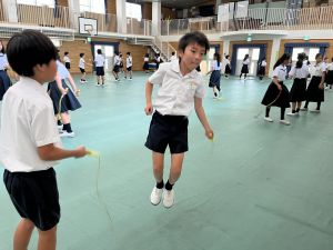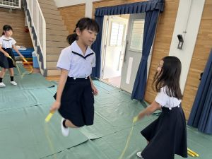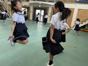 昨日の練習を受けて自主的に、「ボール」ではなく「縄跳び」を手にとる人が出てきました。