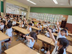 【本日の連絡】 ◯映画鑑賞へ出かけている間に、たくさんの保護者のみなさんに、クーラーのフィルターやサーキュレーターに溜まったほこりや、網戸や窓やトイレの隅々までお掃除をしていただきました。学校が美しくなり気持ちよく子どもたちも学校生活が過ごせそうです。暑い中、本当にありがとうございました。 ◯来週月曜日から、後期トリオがスタートします。 トリオメンバーは、前期と変わります。どんなメンバーになるのか今から楽しみですね。 ◯スポーツデー臨時入校証の手紙について 本日、スポーツデー臨時入校証の手紙を配付しています。詳細については手紙を読んでください。 例年、間違いがありますので、間違いが多い箇所について確認します。 ①基本的に保護者の皆様は、普段使用している入校証を使用してください。(既に配付している2枚) (そのため、保護者の皆様の名前は必要ありません) ②臨時入校証を発行できる相手は、本校児童に関わる家族・親族のみです。 ③9月26日(金)締切です。それ以降については、全体で数を管理しているため受け付けられません。申込用紙をお子様に持たせた際は、連絡帳で担任へお知らせください。 ④名札については各担任が名前を書きますので、楷書体でわかりやすくご記入ください。 |