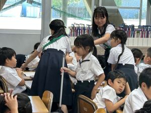 また、1年生との交流活動も相変わらず一生懸命です。小さな子どもたちにどう声をかけるか、どう接すれば安心できるかを考えながら取り組んでいる姿は、本当に頼もしく感じます。その中で、かわいい笑顔に癒されたり、思うようにいかないことから学んだりと、子どもたち自身もたくさんのものを受け取っています。