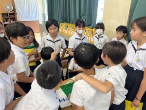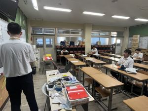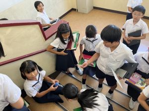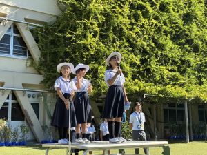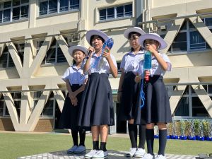 朝礼で4年生の代表児童が防災宿泊訓練・トリオぼうさいタイムについて、お知らせをしました。堂々と言えていて、他の学年のお友だちも興味をもってくれていました。