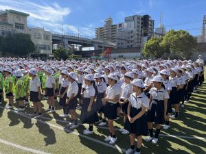 朝礼で4年生の代表児童が防災宿泊訓練・トリオぼうさいタイムについて、お知らせをしました。堂々と言えていて、他の学年のお友だちも興味をもってくれていました。