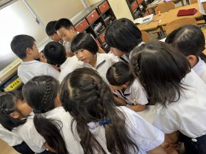 すると、まわりのお友だちも一緒に拾い集め始めました。こういった、何気ない優しさステキです!