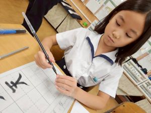 今日は、けのびのような『はらい』、重ねてすべり台のような『はらい』、ジェットコースターのような『はらい』を水筆、鉛筆で練習しました。