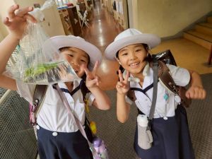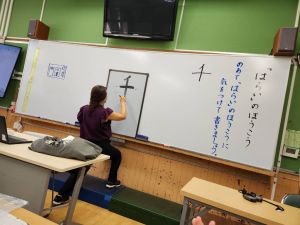 9月になったのに、暑さが変わりません。体育は、日陰からスタートして50メートル走のタイムをとりました。暑いため、体操は教室で、軽く体を日陰で動かして、50メートルを一本走り終えたら教室へ。よく頑張りました!