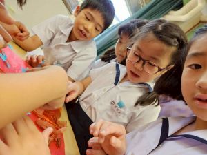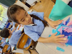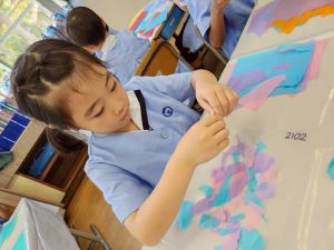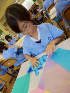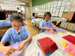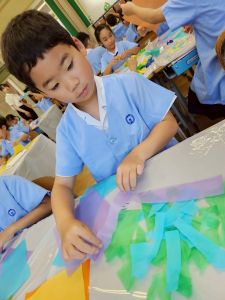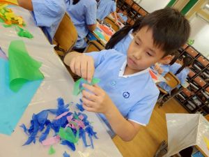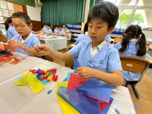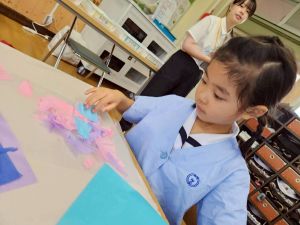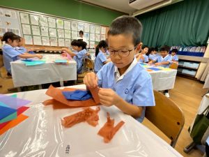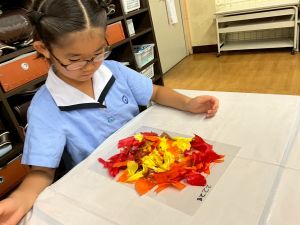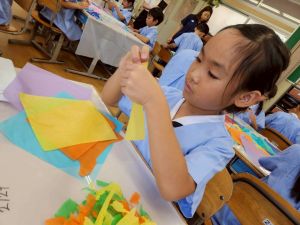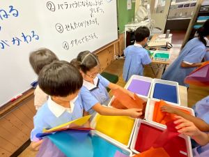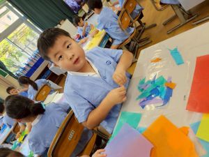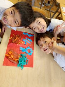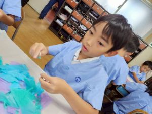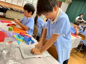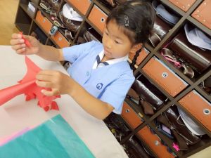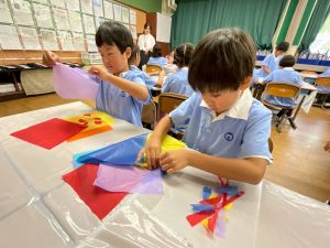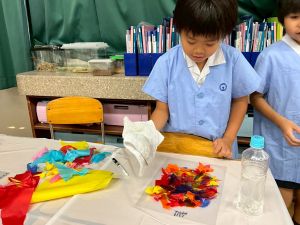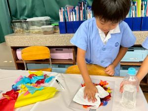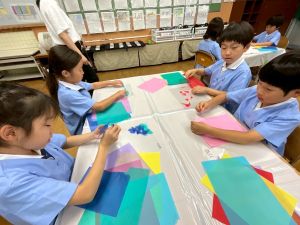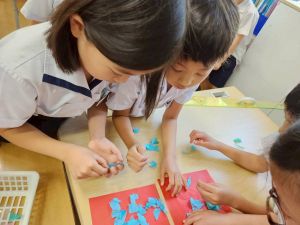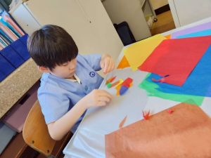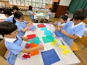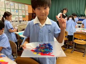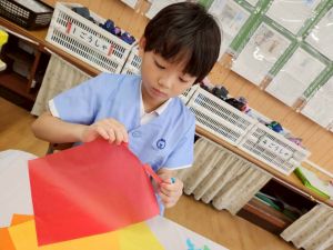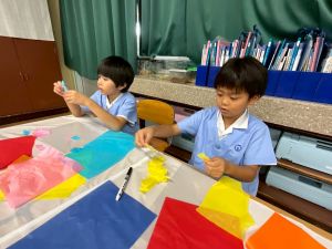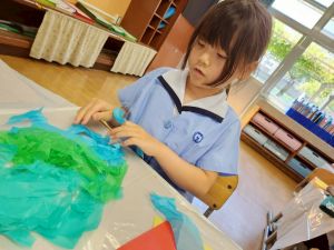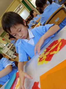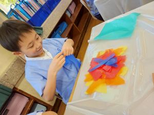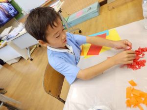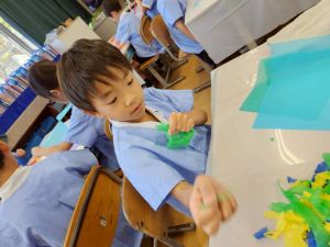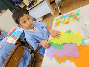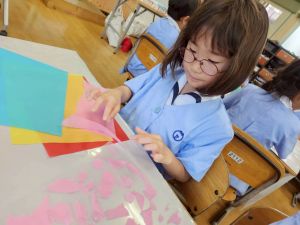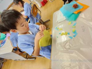 指先を上手に使って、おはながみをちぎって!かさねて!作品作りを楽しみました。時間が足りなくなるほど熱中しておました。次回は実習生の先生たちと楽します。(3組は明日します!)