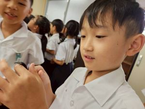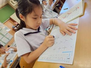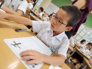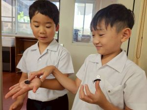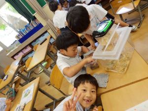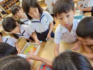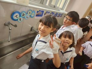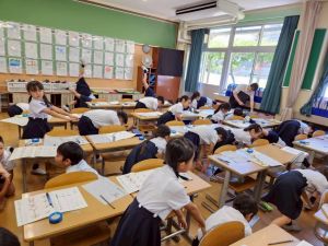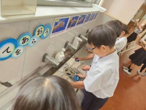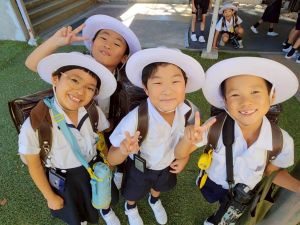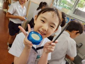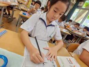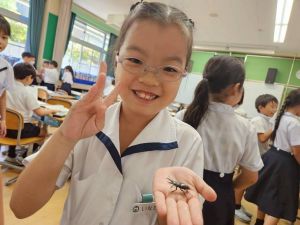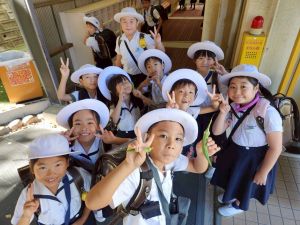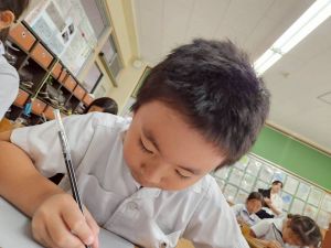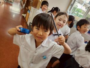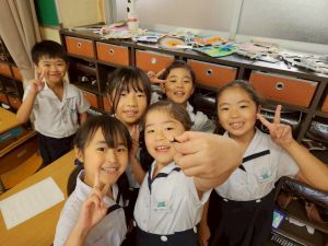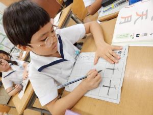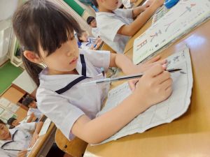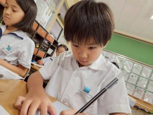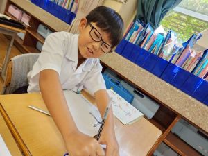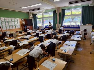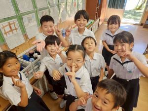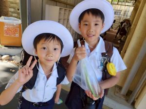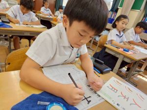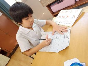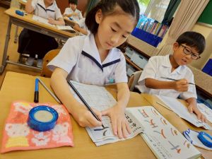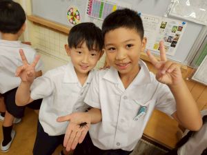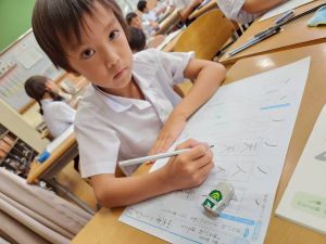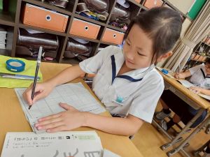 9月になったのに、暑さが変わりません。体育は、日陰からスタートして50メートル走のタイムをとりました。暑いため、体操は教室で、軽く体を日陰で動かして、50メートルを一本走り終えたら教室へ。よく頑張りました!