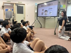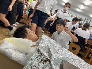 〈連絡〉 ① 発育測定をしました。 「BW(Bosai Week)」の今週、身を守るぼうさいとして湊川先生からお話をしてもらっています。