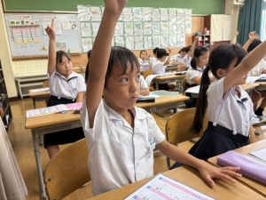 それは、漢字学習の時間に、実習の先生方が前に立っておられました。