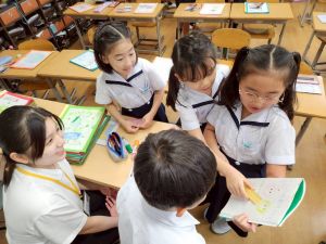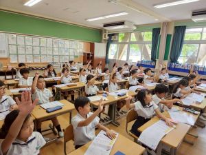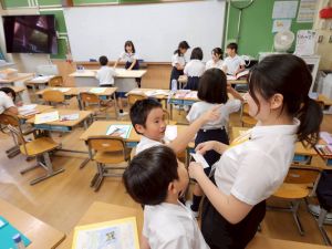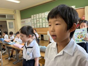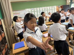 それは、漢字学習の時間に、実習の先生方が前に立っておられました。