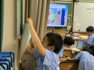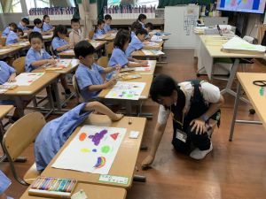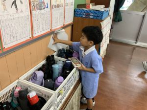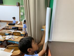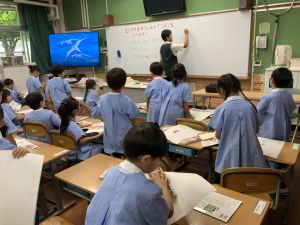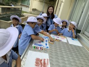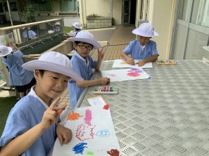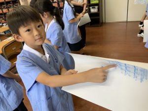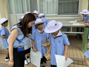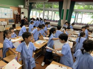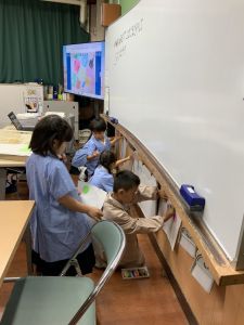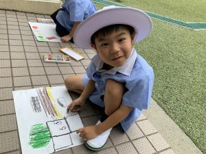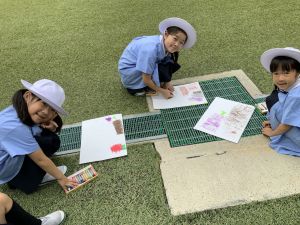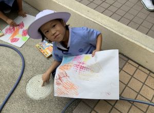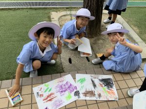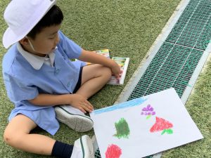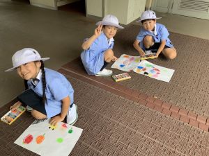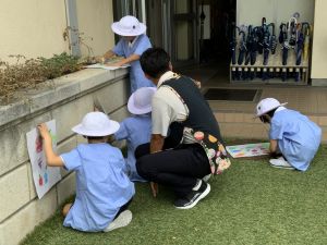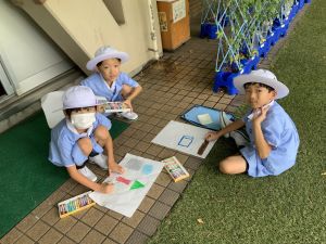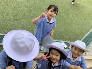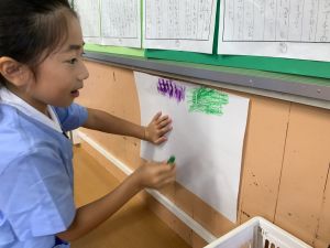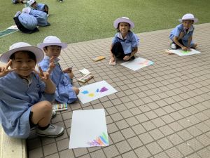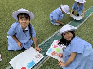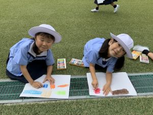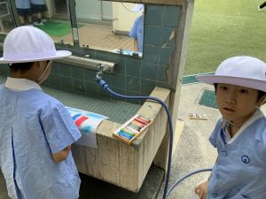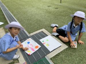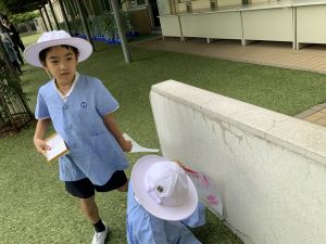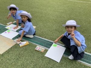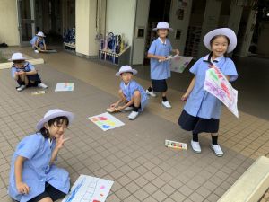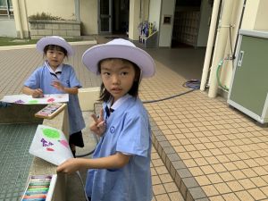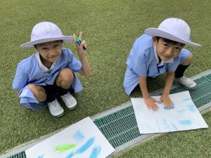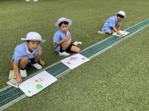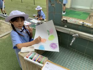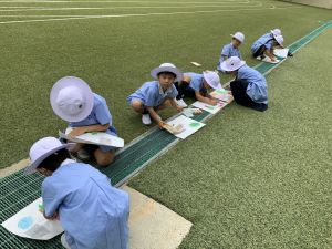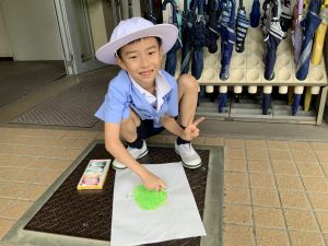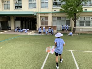 活動範囲はひろがり教室の外へ!運動場の凸凹探しです。子どもたちの顔は更にキラキラ・どきどき・わくわく!蒸し暑いので短い時間ではありましたが,たくさんの凸凹を見つけることができ,満足笑顔で教室に戻ってきました。