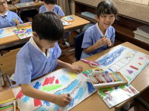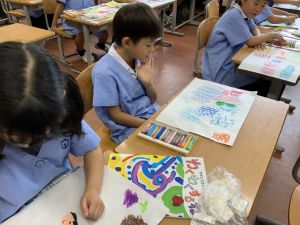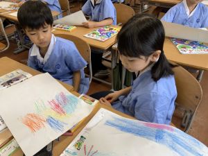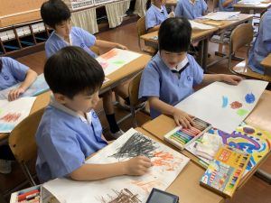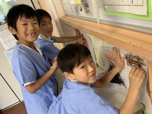 残りの時間で見立てた「なにか」になるように描き加え,作品を完成させていきました。