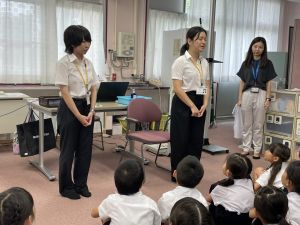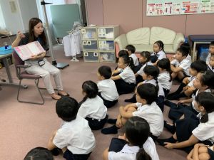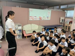 絵本『おしえて くもくん』を使って、体の大切さや自分を守ることについて、丁寧に教えていただきました。子どもたちは真剣に耳を傾け、登場人物の気持ちに寄り添いながら考えることができていました。