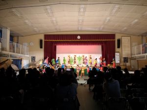 学芸会の2日目が終わりました。今日は1~3年生が、練習の成果を発揮しました。1年生の音楽物語では、大きなくじらが登場し、3年生の音楽では、歌の途中でリコーダーの演奏があり、学年ごとの演出の違いを楽しむことができました。2年生の劇は、初めての「劇」に、緊張しながらも一生けんめい取り組む子どもたちが、とてもかわいかったです。