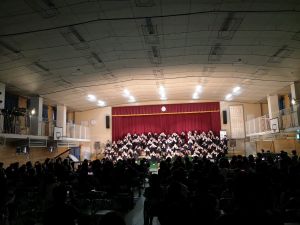 2日間お天気に恵まれましたが、気温は高くなかったので、この後、体調を崩さないよう体調管理をお願いします。また、今回の学芸会を実施するにあたり、講堂内の換気について、ダイキン「空気の相談窓口」さんに、ご助言いただきました。除菌活動・片付け作業には、卒業生ボランティア・実習生にもお手伝いしてもらいました。