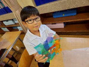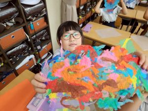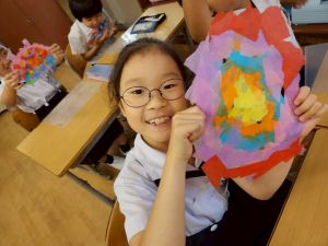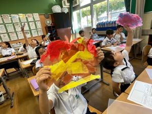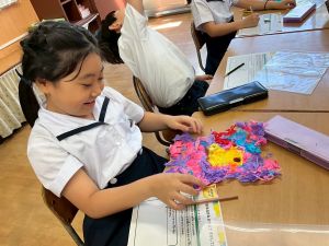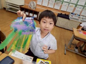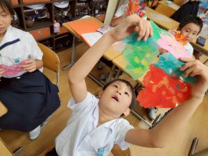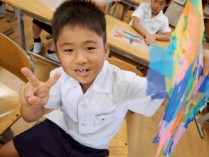 図工の学習で、作品を完成させると、一つの達成感があります。
