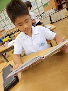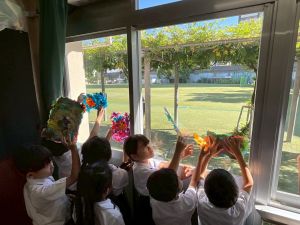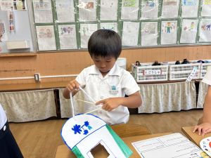 今日は、できあがった自分の作品やお友達の作品をじっくり見ました。