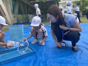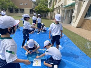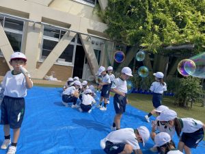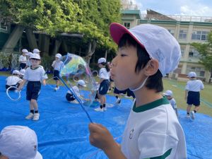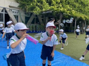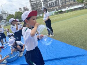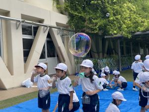 前回に引き続き、今回もしゃぼん玉。実習生と楽しく学習しました。