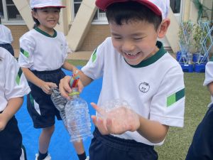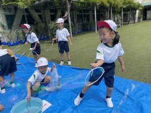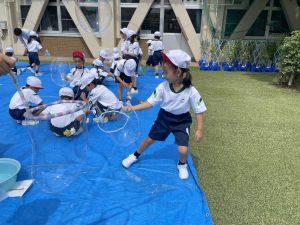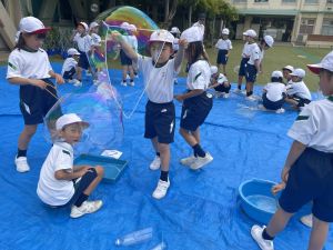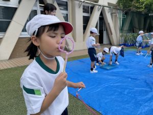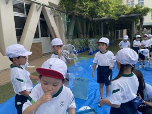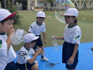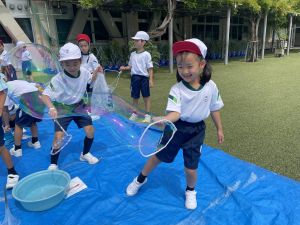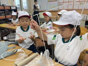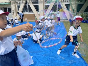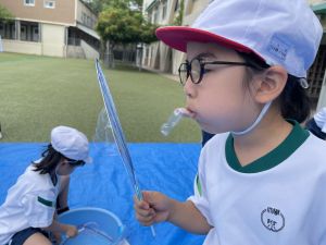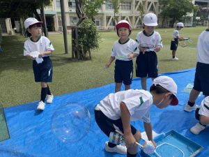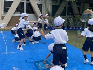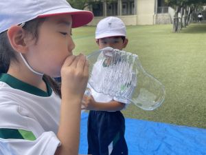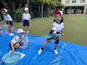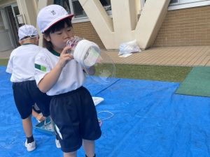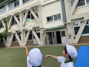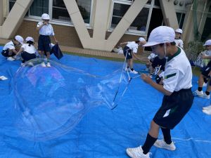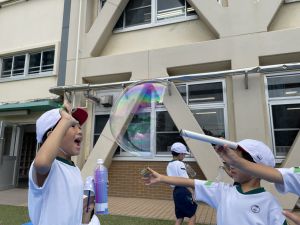 ぜひ、今日の失敗を次に生かせるよう。お休みの日にもっと大きいしゃぼん玉作りにチャレンジしてくださいね!