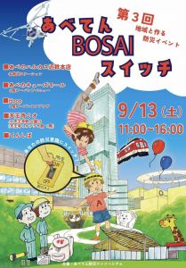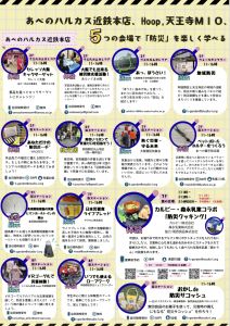 今週土曜日,9月13日に「あべてんBOSAIスイッチ」という地域の防災イベントがあべのハルカス・MIO・キューズモールなどの商業施設を中心に開かれます。