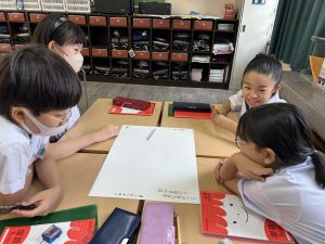 今,教室に掲示している国語科の「大事なものはなんですか」の学習の1時間目にグループで話し合っている様子です。