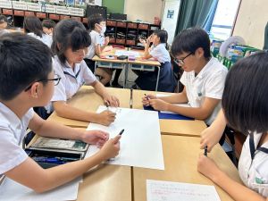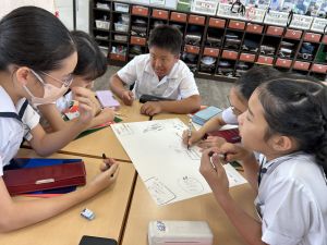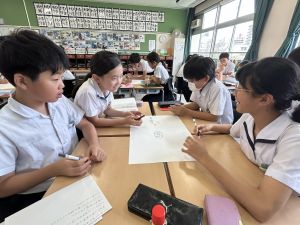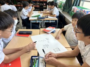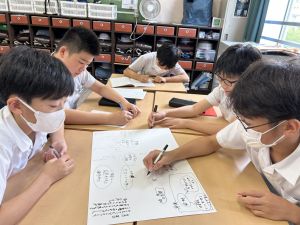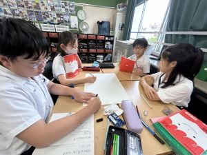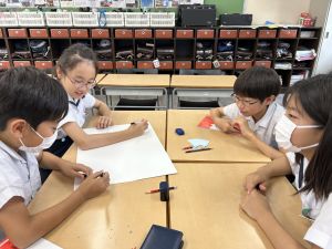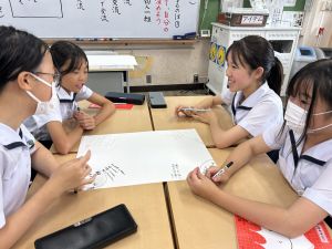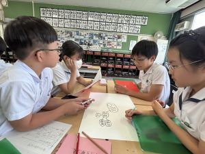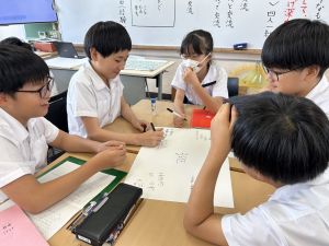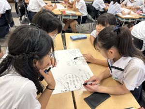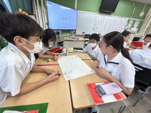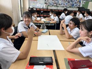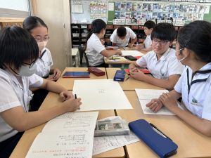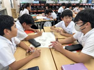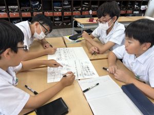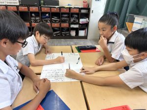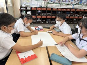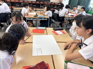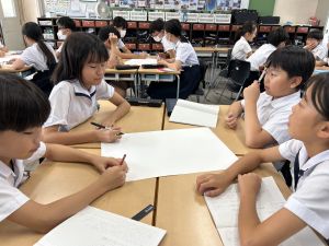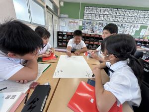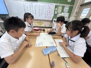 今,教室に掲示している国語科の「大事なものはなんですか」の学習の1時間目にグループで話し合っている様子です。